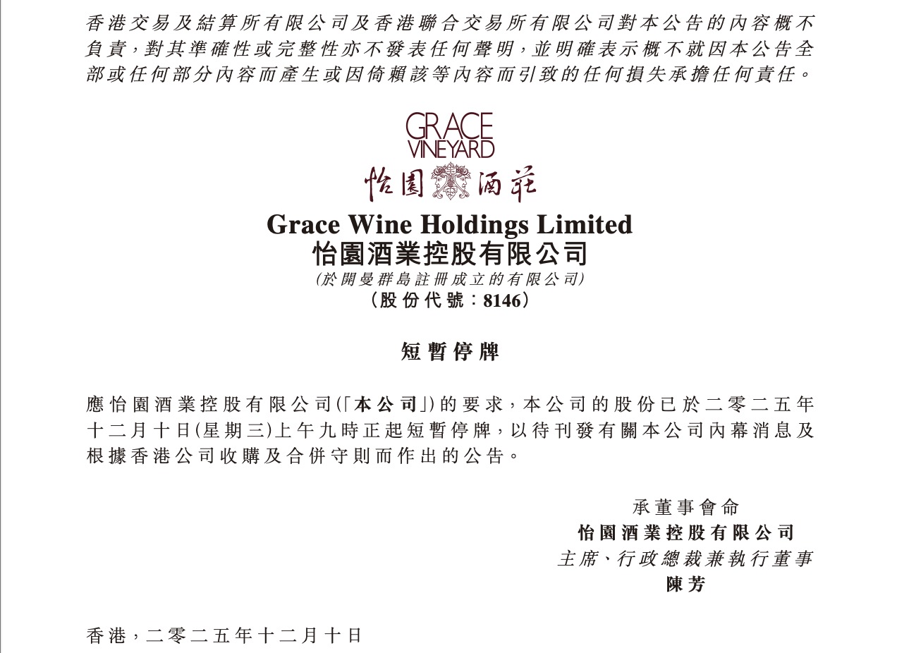 12月15日,根据港交所披露公开信息,酒类流通平台1919创始人杨陵江已获得怡园酒业(08146.HK)73.63%的股份,成为这家香港上市公司的新任大股东及实际控制人。
